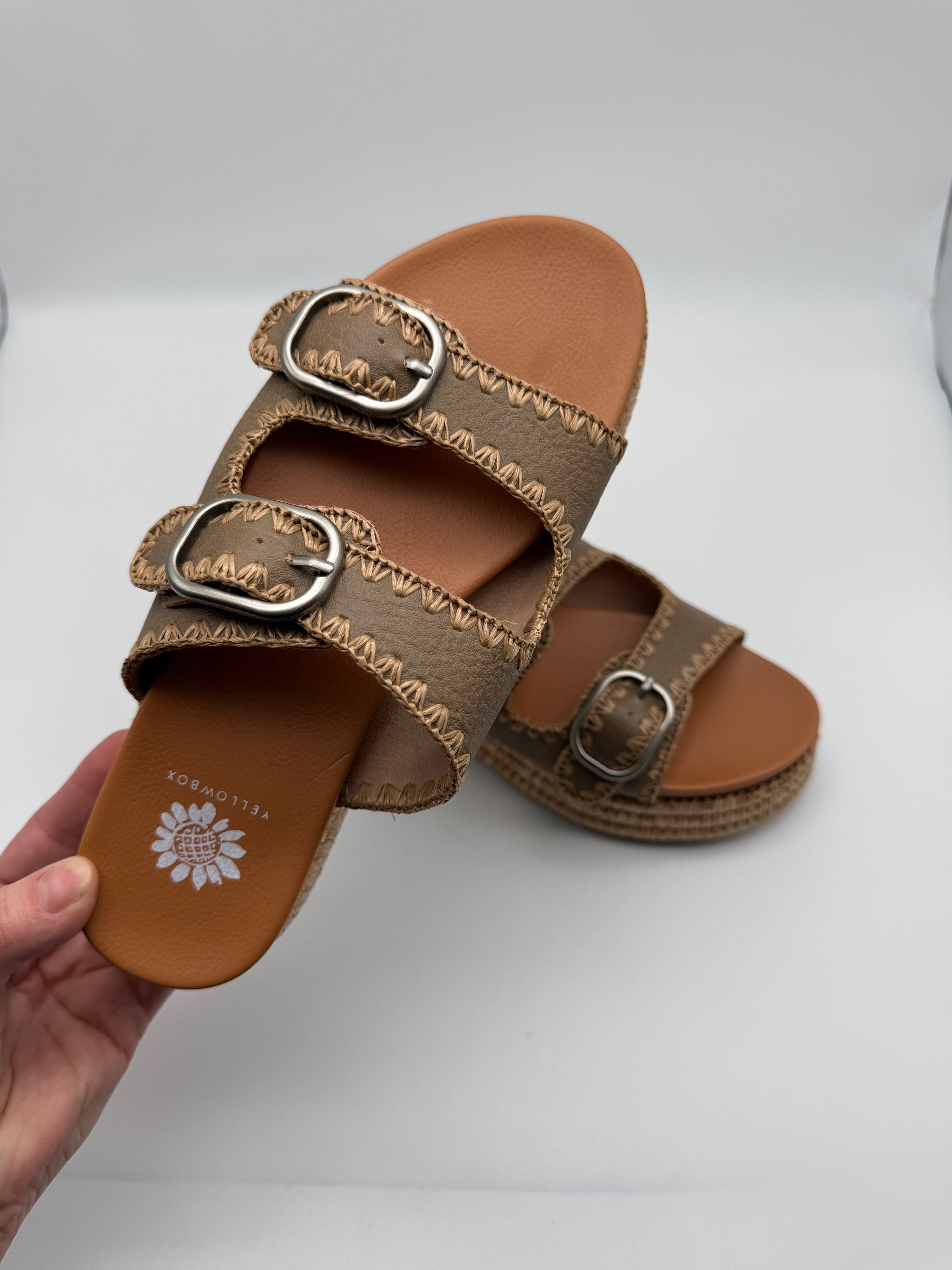 Step into effortless style with the HERANA flatform sandal. Crafted from smooth faux leather, this versatile piece features a jute-wrapped flatform wedge that delivers a full 1.88 inches of height without sacrificing comfort. The round toe design offers a flattering silhouette, while the signature Yellow Box EVA insole provides cushioned support all day long. Finished with a durable rubber outsole, the HERANA is your go-to sandal for any occasion.