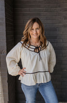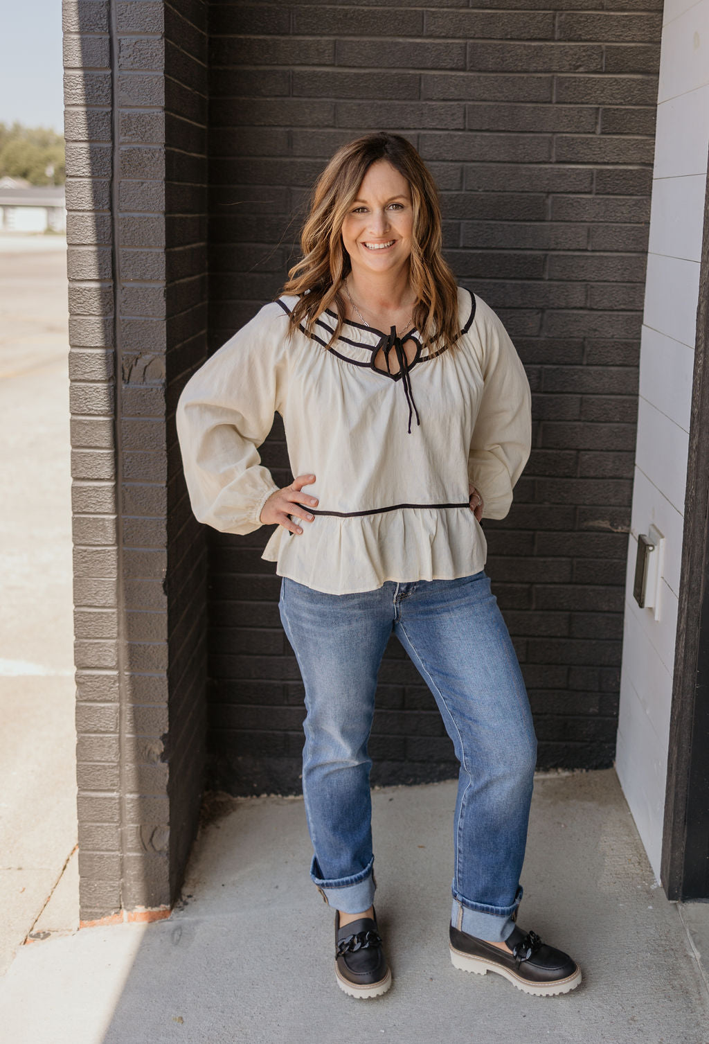 VERONICA CREAM BLOUSE WITH BLACK STITCHING