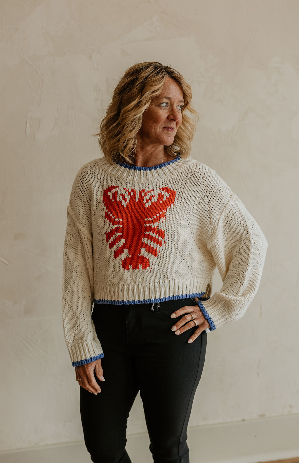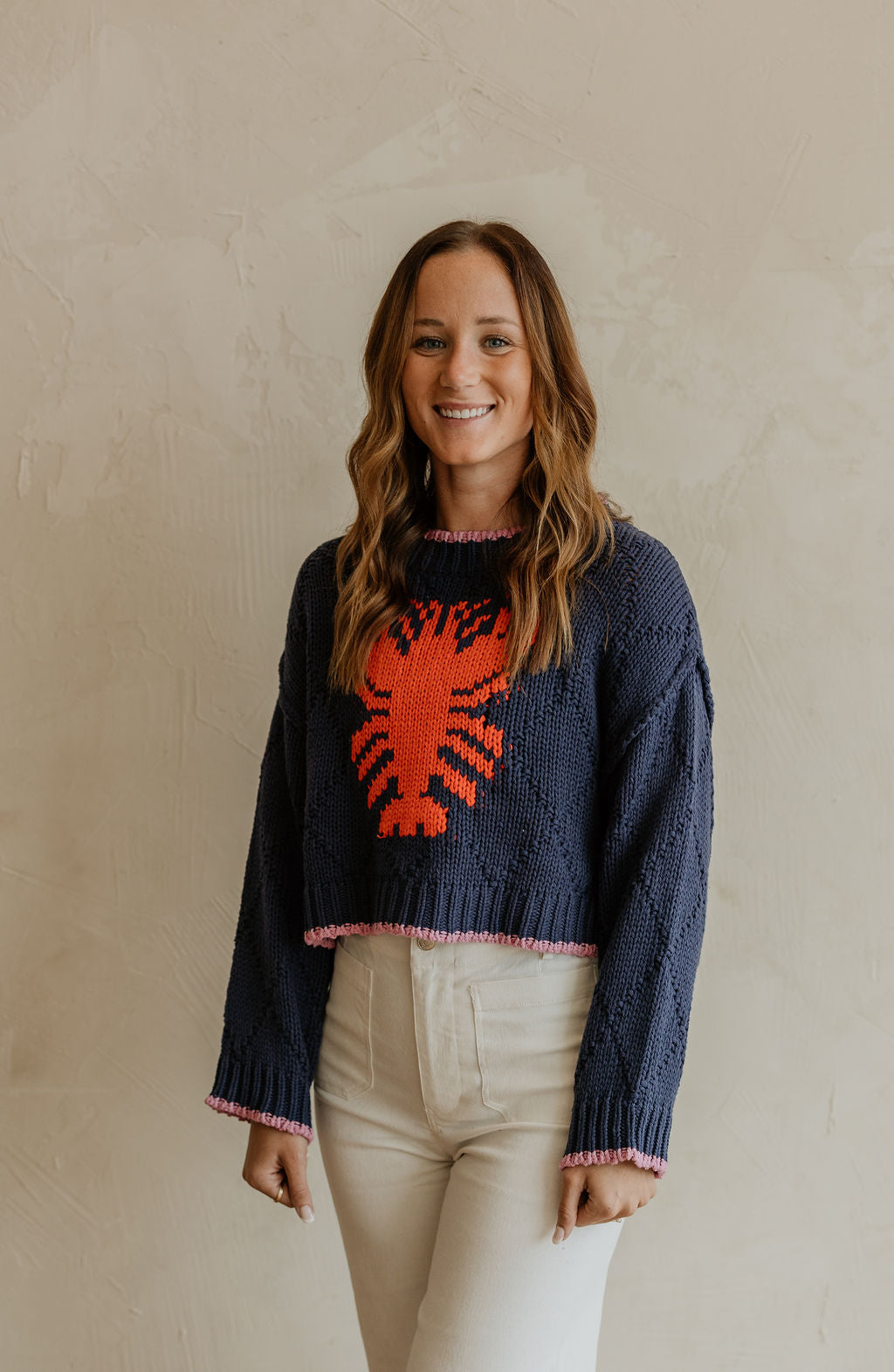 YOU'RE MY LOBSTER KNIT CROPPED SWEATER